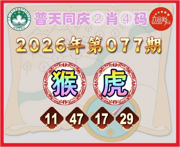 077期: 🧶『普天同庆』 🧶②肖④码🧶【猴】【11.47.17.29】开:虎29
