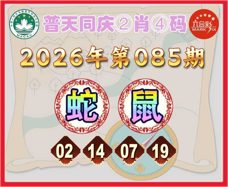 085期: 🧶『普天同庆』 🧶②肖④码🧶【蛇】【02.14.07.19】开:鼠19