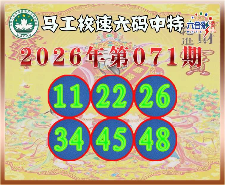 071期:【马工枚速】 🍧六码中特🍧【11.22.26.34.45.48】开:48