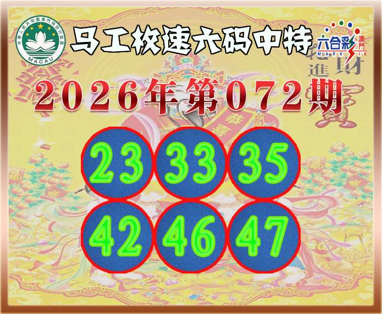 072期:【马工枚速】 🍧六码中特🍧【23.33.35.42.46.47】开:46