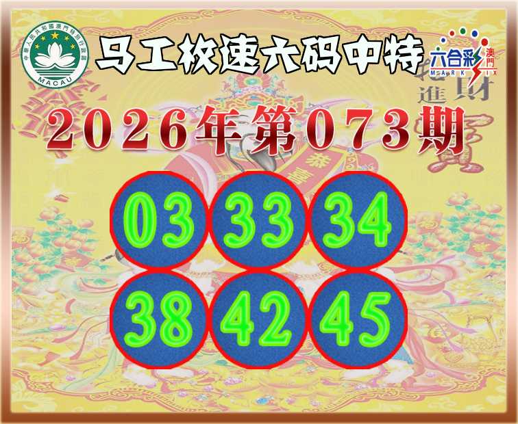 073期:【马工枚速】 🍧六码中特🍧【03.33.34.38.42.45】开:34