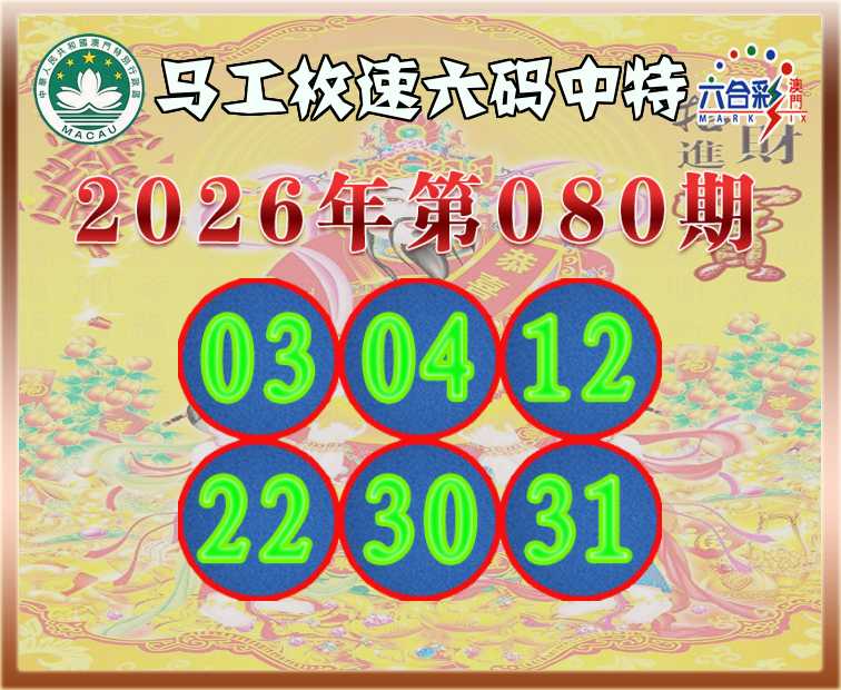 080期:【马工枚速】 🍧六码中特🍧【03.04.12.22.30.31】开:03