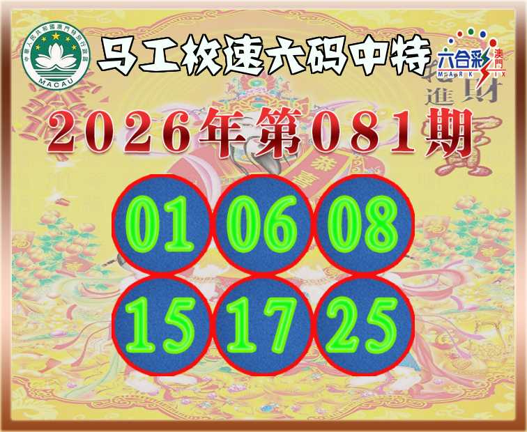 081期:【马工枚速】 🍧六码中特🍧【01.06.08.15.17.25】开:17